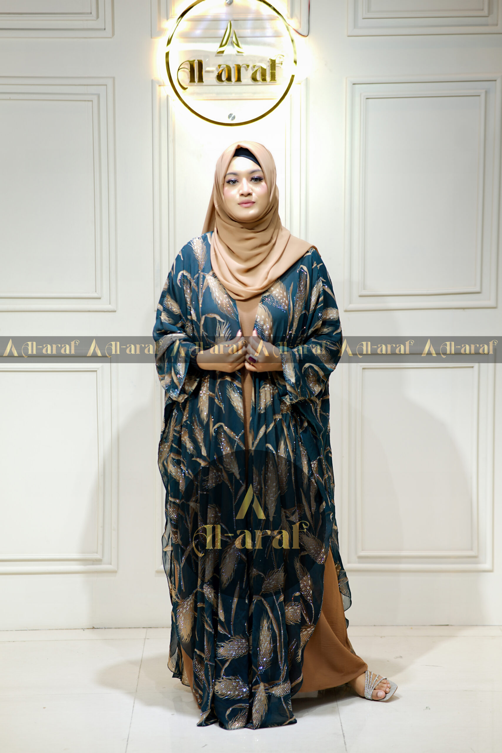 2-Part Crystal Fabric Borka – Premium Stone Work & Long Hijab | Alaraf BD
