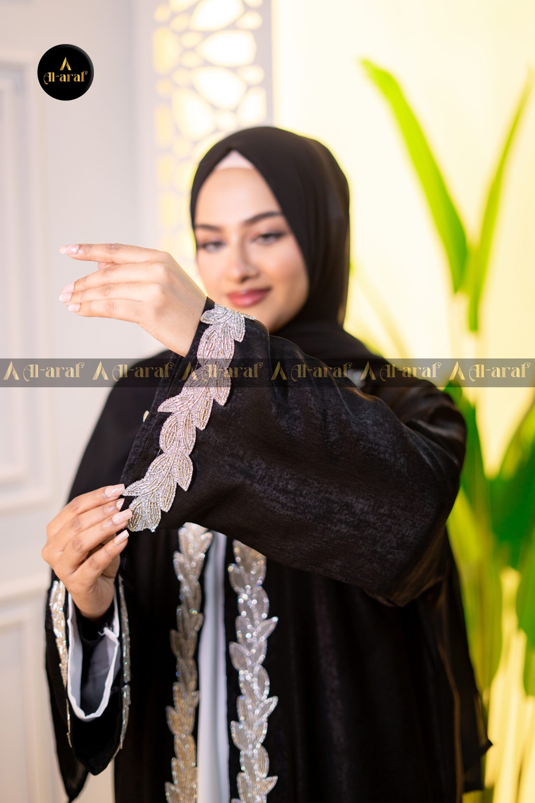 Zafran Silk Embroidery Abaya – Premium Stone Work Design for Special Occasions
