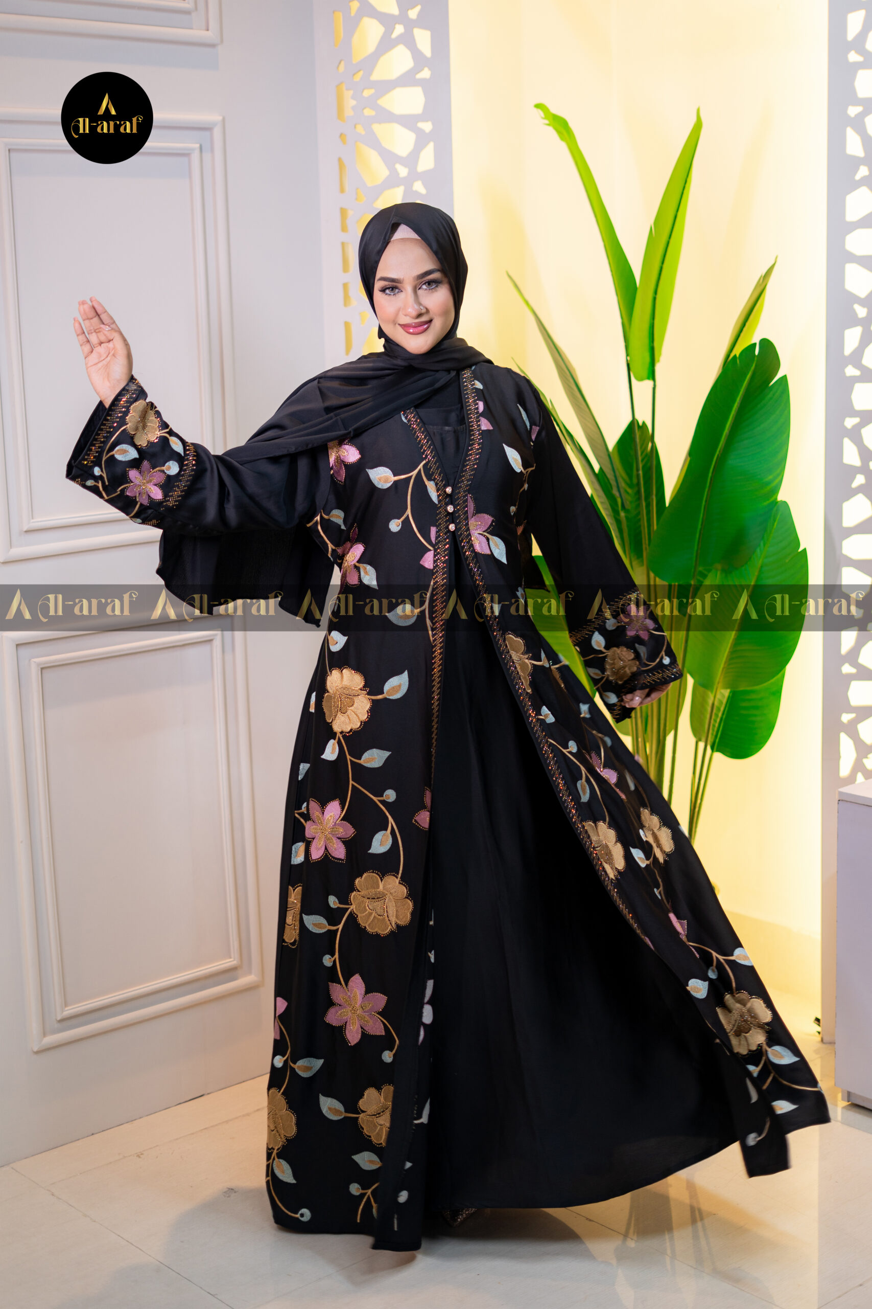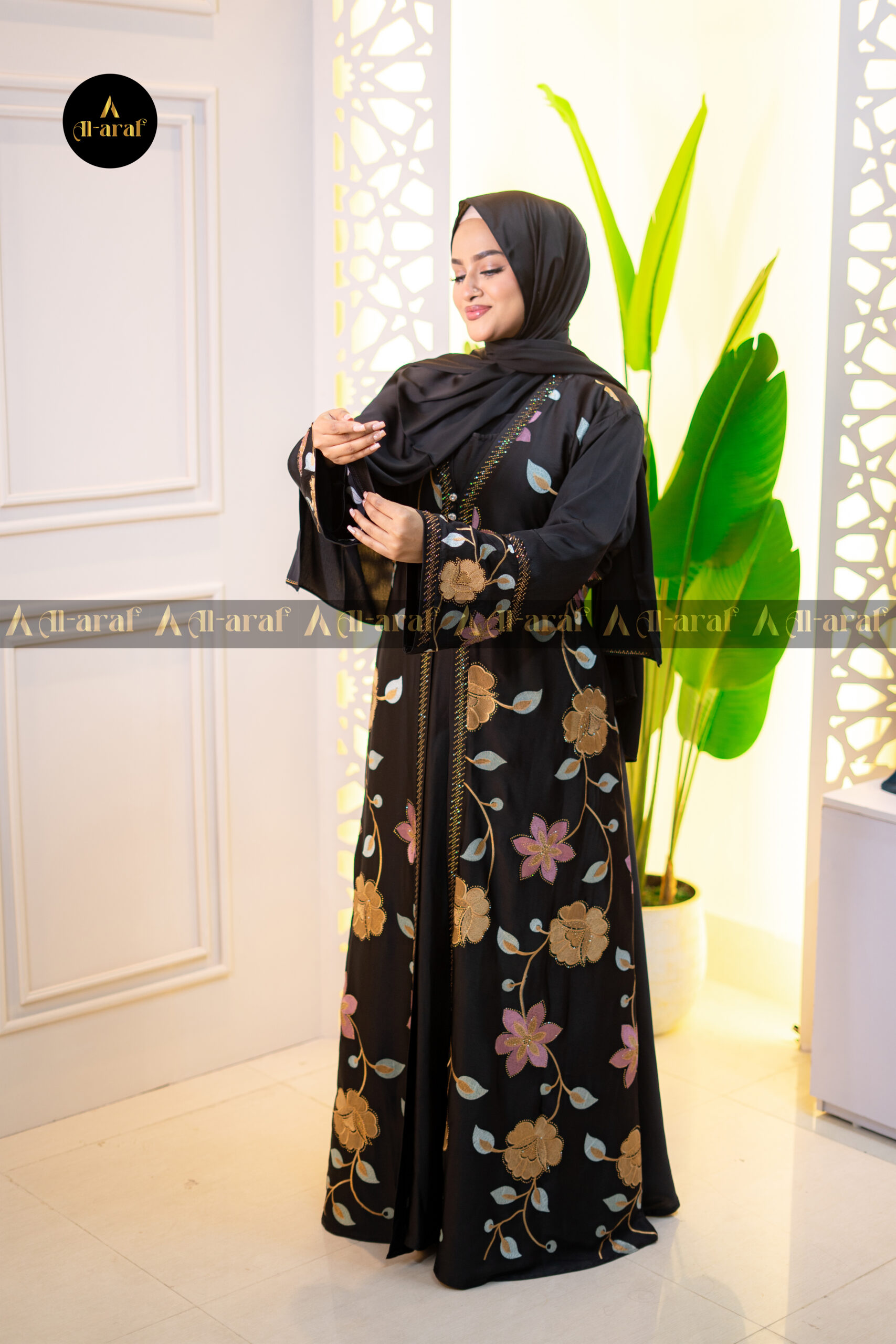 Introducing our most rare and elegant Embroidery Abaya collection with 20% discount, a true showstopper for any occasion. This exquisite two-part set combines traditional modesty with stunning modern design, perfect for those seeking a glamorous look with premium comfort.