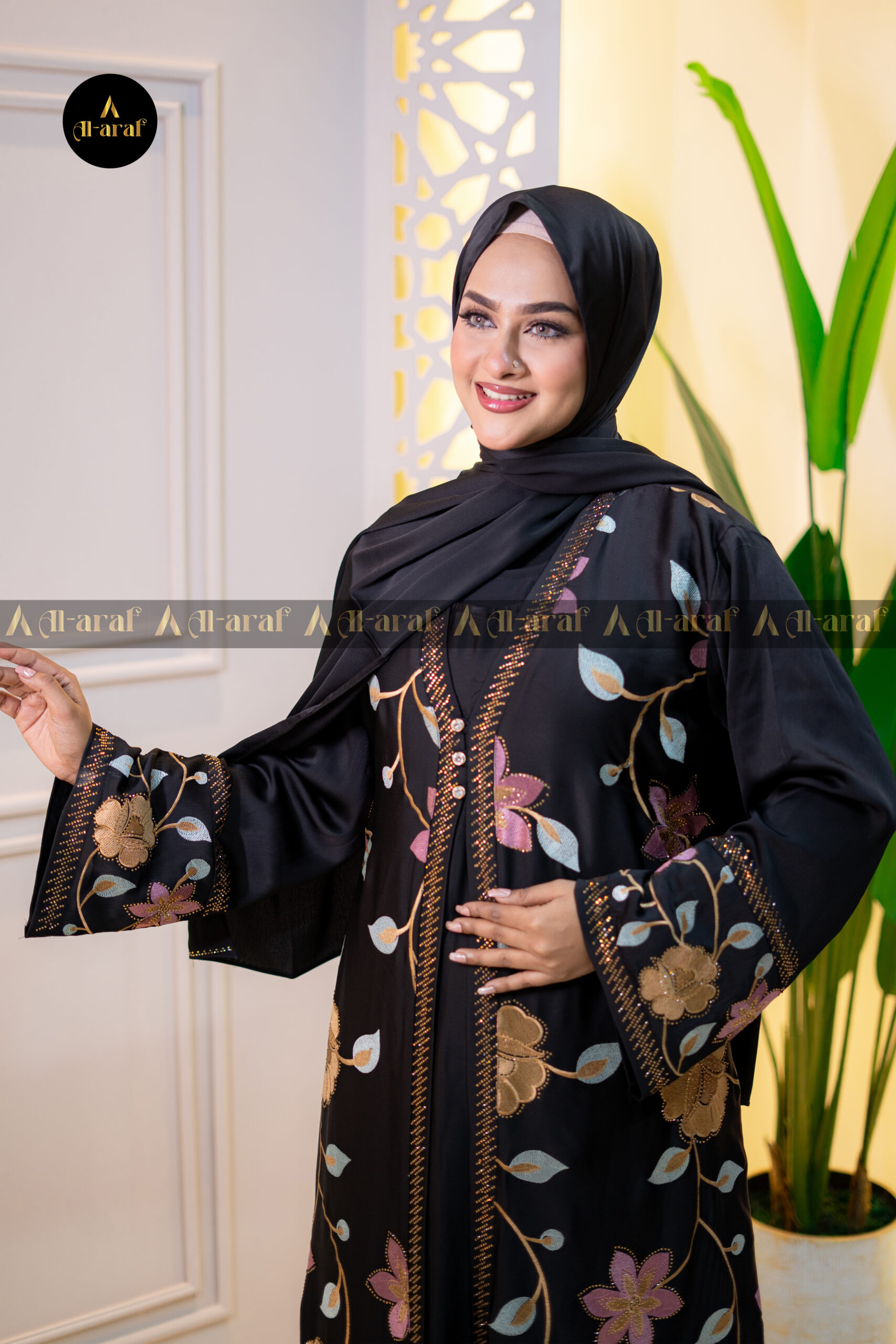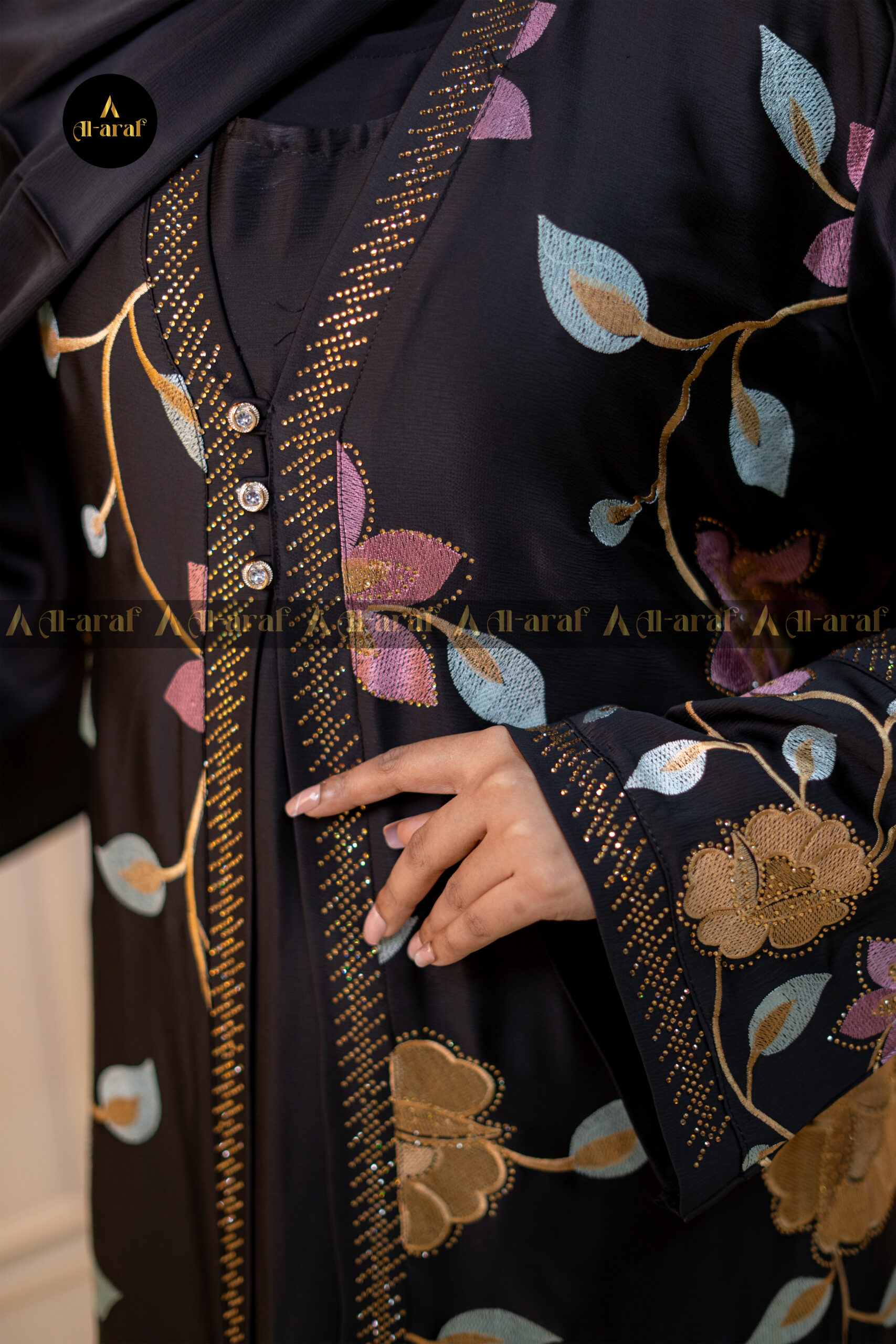 Zafran Silk Embroidery Abaya – Premium Stone Work Design for Special Occasions